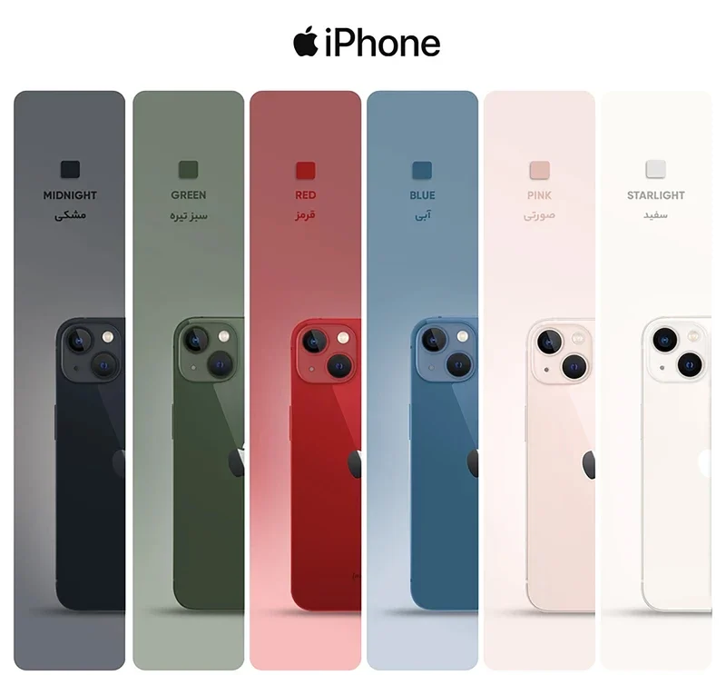 گوشی موبایل iPhone 13 CH پرچمدار جدید شرکت اپل است که با چند ویژگی جدید و دوربین دوگانه روانه بازار شده است. نمایشگر آیفون 13 به پنل Super Retina مجهز شده است تا تصاویر بسیار مطلوبی را به کاربر عرضه کند. این نمایشگر رزولوشن بسیار بالایی دارد؛ بهطوریکه در اندازهی 6.1 اینچیاش، حدود 460 پیکسل را در هر اینچ جا داده است. امکان شارژ بیسیم باتری در این گوشی وجود دارد. تشخیص چهره با استفاده از دوربین جلو دیگر ویژگی است که در آیفون جدید اپل به کار گرفته شده است. از نظر سختافزاری این گوشی از تراشهی جدید A15 بهره میبرد که دارای 15 میلیارد ترانزیستور است که دارای کنترل گرمای مطلوبی بوده که تا بتواند علاوه بر کارهای معمول، از قابلیتهای جدید واقعیت مجازی که اپل این روزها روی آن تمرکز خاصی دارد، پشتیبانی کند. به گفته خود شرکت اپل این گوشی دارای سرعتی 50 برابر نسخه 12 خود است. پردازنده دارای ماژولار جدیدی است که مصرف باتری را بسیار پایینتر آورده است و شما دارای حفظ باتری بالاتری هستید. اپل در این سری از گوشیهای iPhone خود پردازنده گرافیکیای را قرار داده که از سری 12 گوشیهای خود 30 درصد سریعتر است و این نویدبخش آن است که شما میتوانید بازیهایی را با گرافیک و MAP سنگین تر و بزرگتر اجرا کنید. یکی از ویژگیهایی که در iPhone 13 شاهد هستیم سیستم فیلمبرداری ProRes سینمایی آن است که می تواند انقلابی در فیلمبرداری گوشیهای موبایل بهراه انداخته باشد. گوشیهای نات اکتیو با قرار گرفتن سیمکارتهای داخلی اکتیو میشوند و برخلاف مدل اکتیو پلمپ کالا باز نشده است. گوشیهای اکتیو برند اپل هم به این شکل هستند که به دلیل محدودیتهای برخی از محصولات اپل برای کشور ایران، در کشورهای همسایه بهصورت رسمی با یک بار قرار گرفتن سیمکارت، اکتیو شده و پلمپ میشوند و باید بدانید که این پروسه هیچ مشکلی در راستای گارانتی کالا بههمراه ندارد. پارتنامبرهای اروپا و ژاپن و امارات تک سیمکارت هستند و پارتنامبرهای مربوط به امارات هم از فیس تایم پشتیبانی نمیکنند. پارتنامبر JA (ژاپن) هم حتی در حالت سایلنت صدای شاتر عکس قطع نمیشود. درون جعبه این گوشی خبری از آداپتور شارژر نیست، اما این گوشی بههمراه شارژر دیواری 20 وات اپل به فروش میرسد
